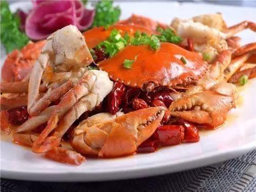 3. 炒蟹:炒蟹口感鲜嫩,味道香辣。将螃蟹洗净,切成块状,与葱姜蒜等调料一起炒制。